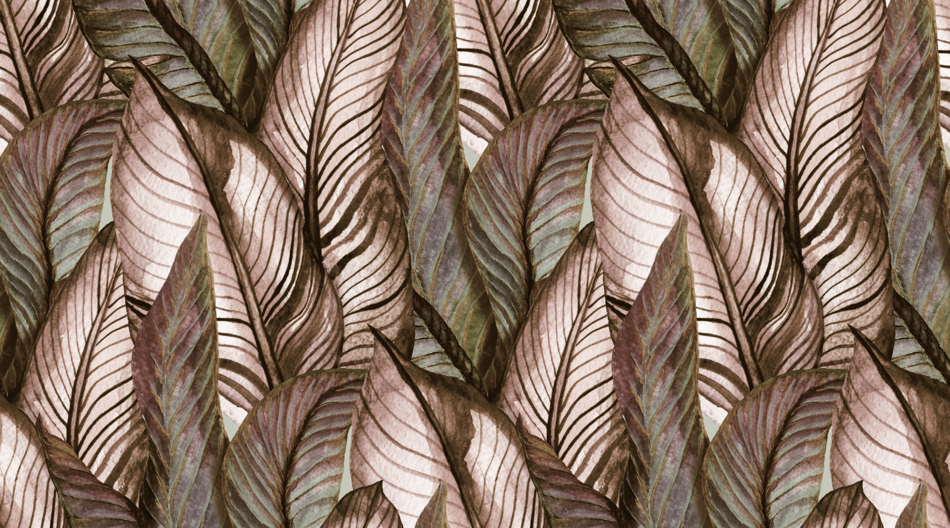 „Art Plant“ entfaltet ein harmonisches Mosaik aus ineinanderliegenden Blättern, das wie ein natürlicher Rhythmus wirkt. Die geometrisch anmutende Wiederholung der Blattstrukturen, fein mit Aquarelltechnik gezeichnet, verschmilzt mit weichen Erdtönen aus Braun, Grün und zartem Violett. Es entsteht ein beruhigendes, fast hypnotisches Spiel aus Form und Farbe.