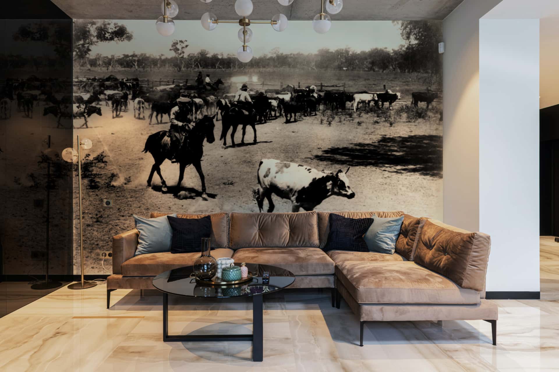 Gedruckt auf hochwertiger Leinwandtapete von Syndikat4, mit fühlbarer Oberfläche und handgearbeitetem Charakter. Ideal für moderne Lofts, Bibliotheken mit Charakter oder Restaurants, die eine Geschichte erzählen wollen.