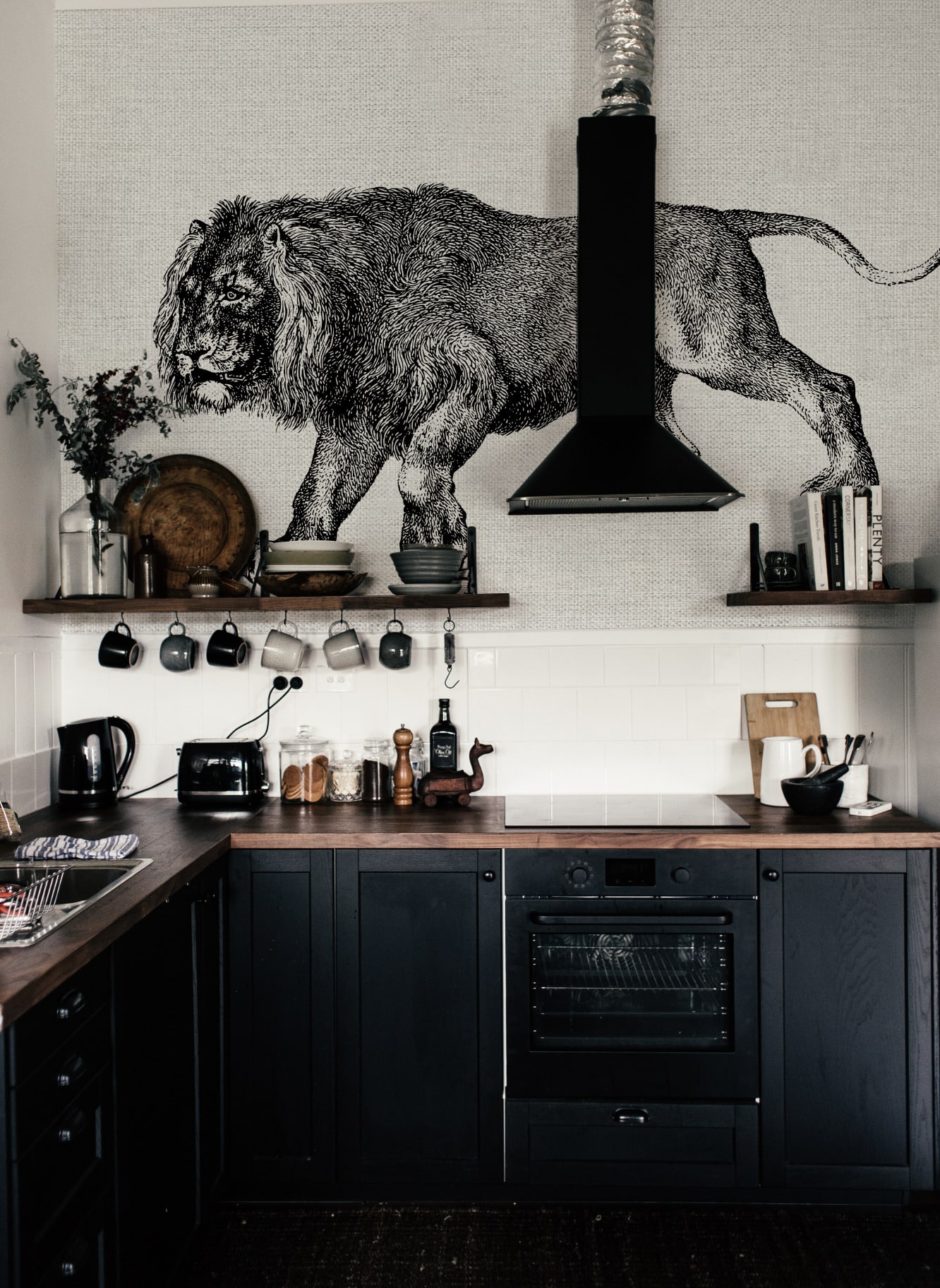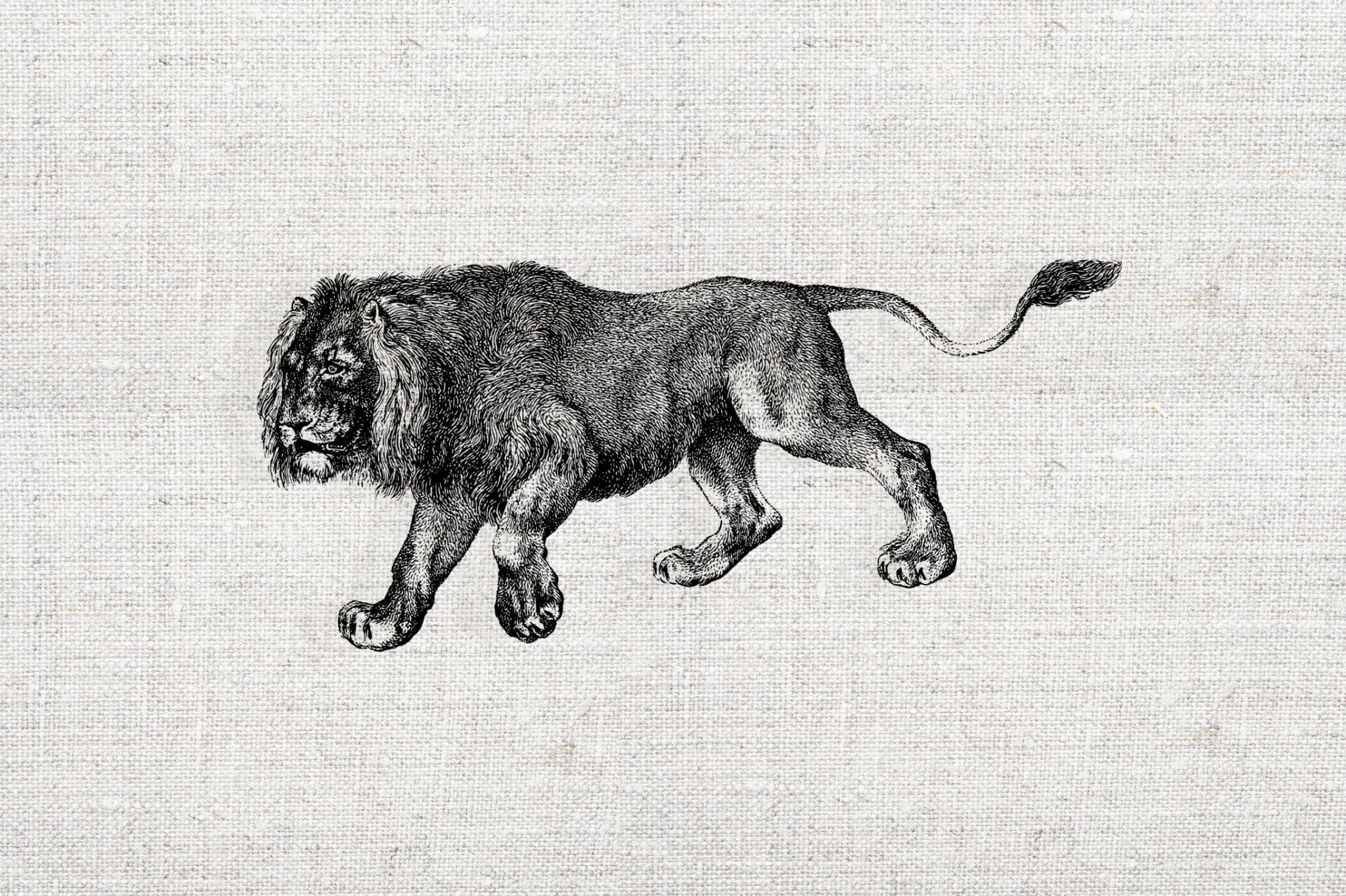 „Der Beschützer“ zeigt einen Löwen, wie gemeißelt aus der Erinnerung antiker Welten. In feiner Linienführung, wie aus einem Kupferstich vergangener Jahrhunderte, schreitet er über die Fläche – ruhig, entschlossen, voller Würde. Keine Pose, kein Gebrüll – sondern pure Präsenz. Der Moment vor der Bewegung, vor der Entscheidung.