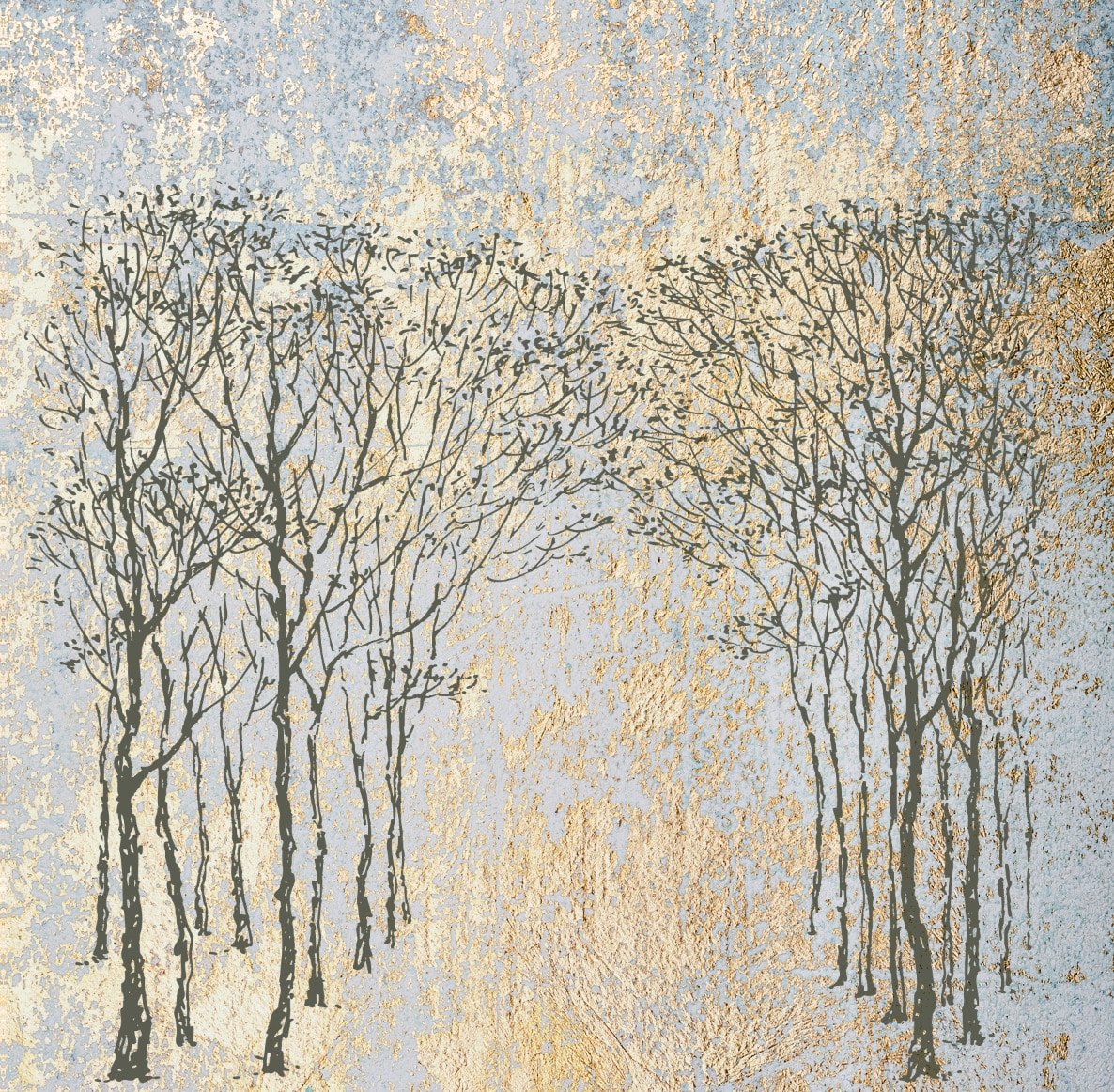 „Die goldene Allee“ ist ein Spaziergang durch ein Märchen aus Linien, Textur und Licht. Zarte, filigrane Baumkronen ragen still in den Raum – als hätten sie sich über den Pfad hinweg berührt, wie ein natürlicher Triumphbogen aus Ästen. Die Szenerie liegt im goldenen Glanz eines beginnenden Morgens oder eines sich neigenden Tages, wo Stille sich in das Geäst senkt.