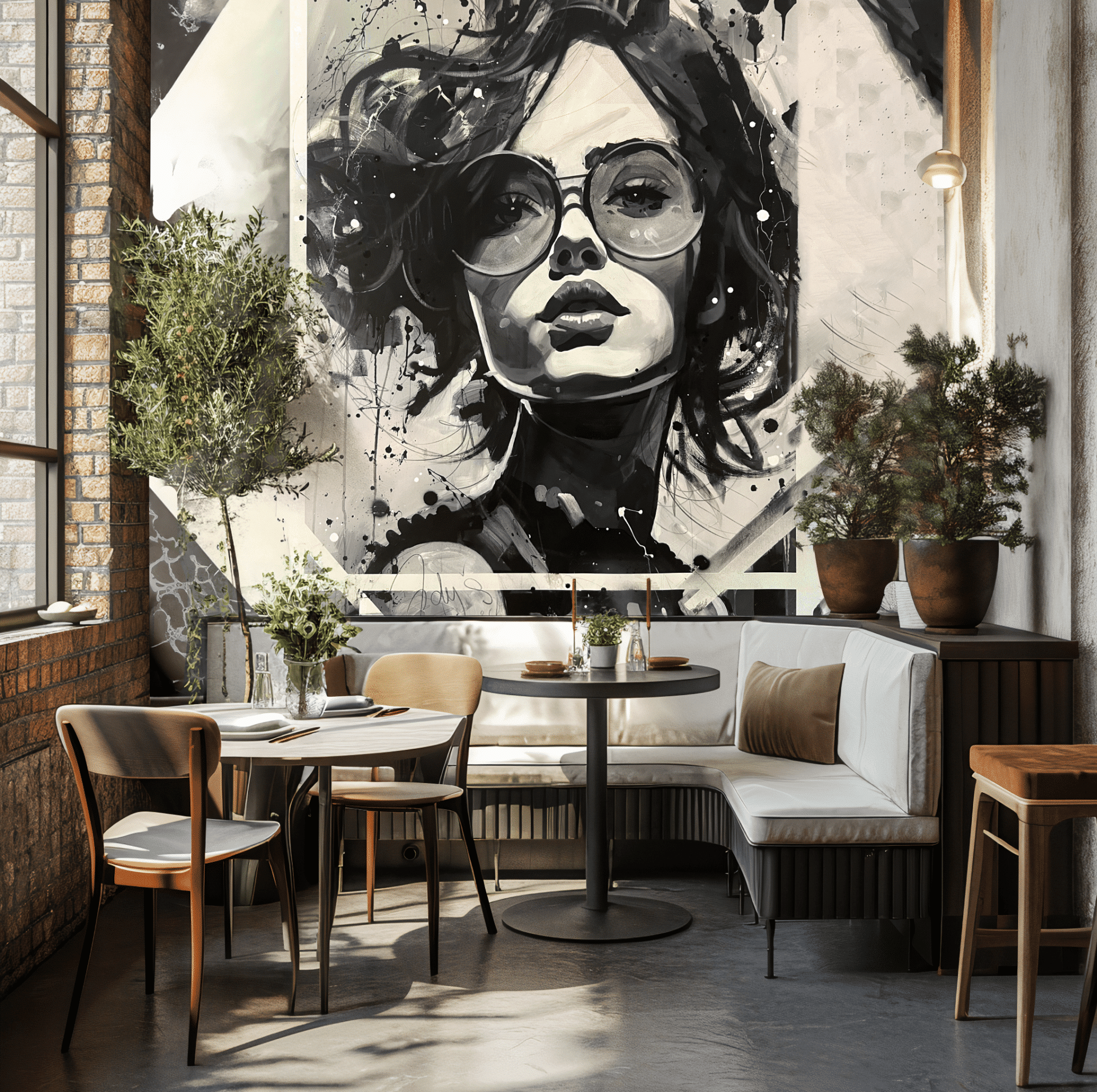 Gedruckt auf hochwertiger Leinwandtapete von Syndikat4, mit fühlbarer Oberfläche und handgearbeitetem Charakter. Ideal für Ankleidezimmer, Boutiquen, moderne Lofts oder als markante Fläche in Konzeptbüros.