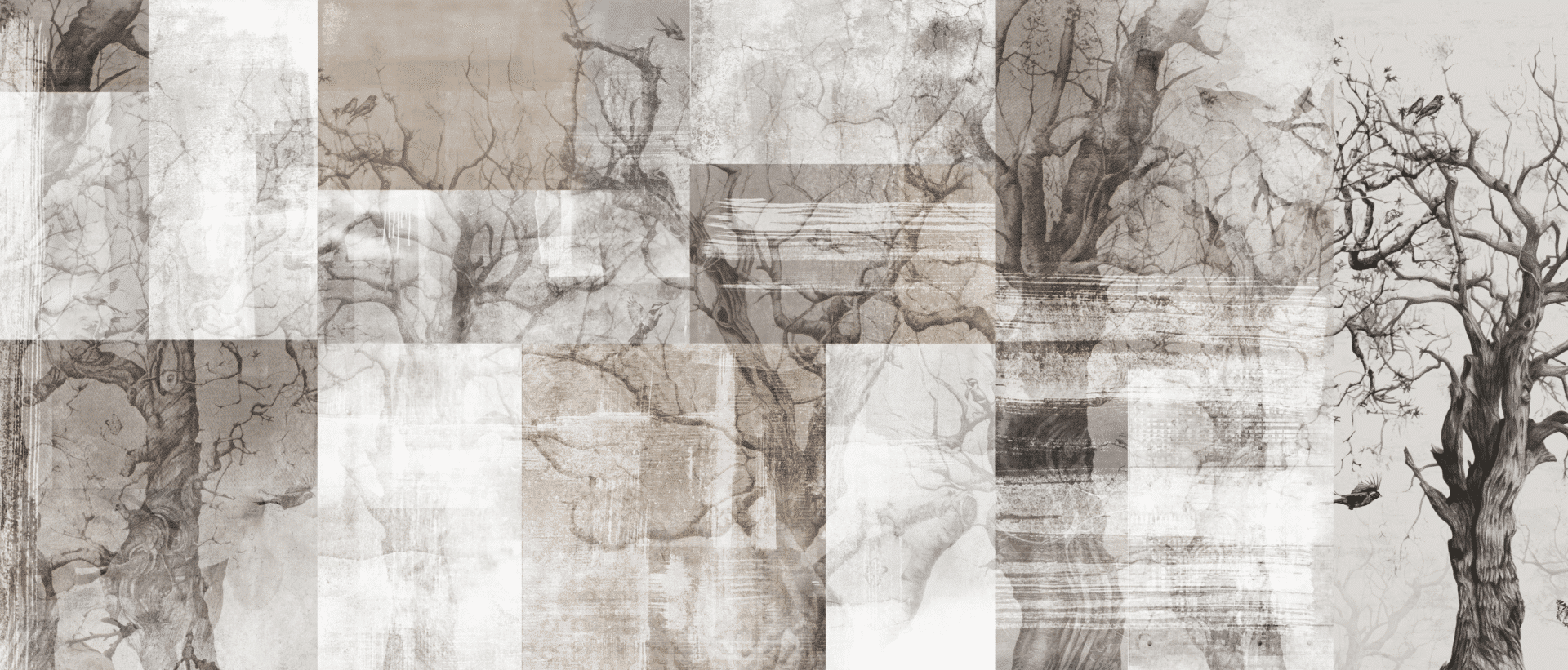 „Lavado“ ist wie ein Echo der Natur, das durch verwaschene Schichten von Erinnerung und Zeit dringt. Alte, knorrige Bäume zeichnen sich in monochromen Nuancen ab, überlagert von transparenten Strukturen, die an Mauerreste, Frost oder Schichtungen aus Papier erinnern. Es ist ein Stillstand, in dem Bewegung liegt – wie Nebel, der durch Erinnerungen streift.