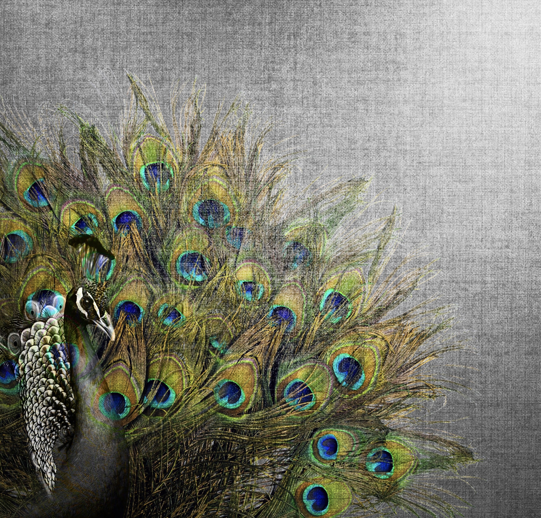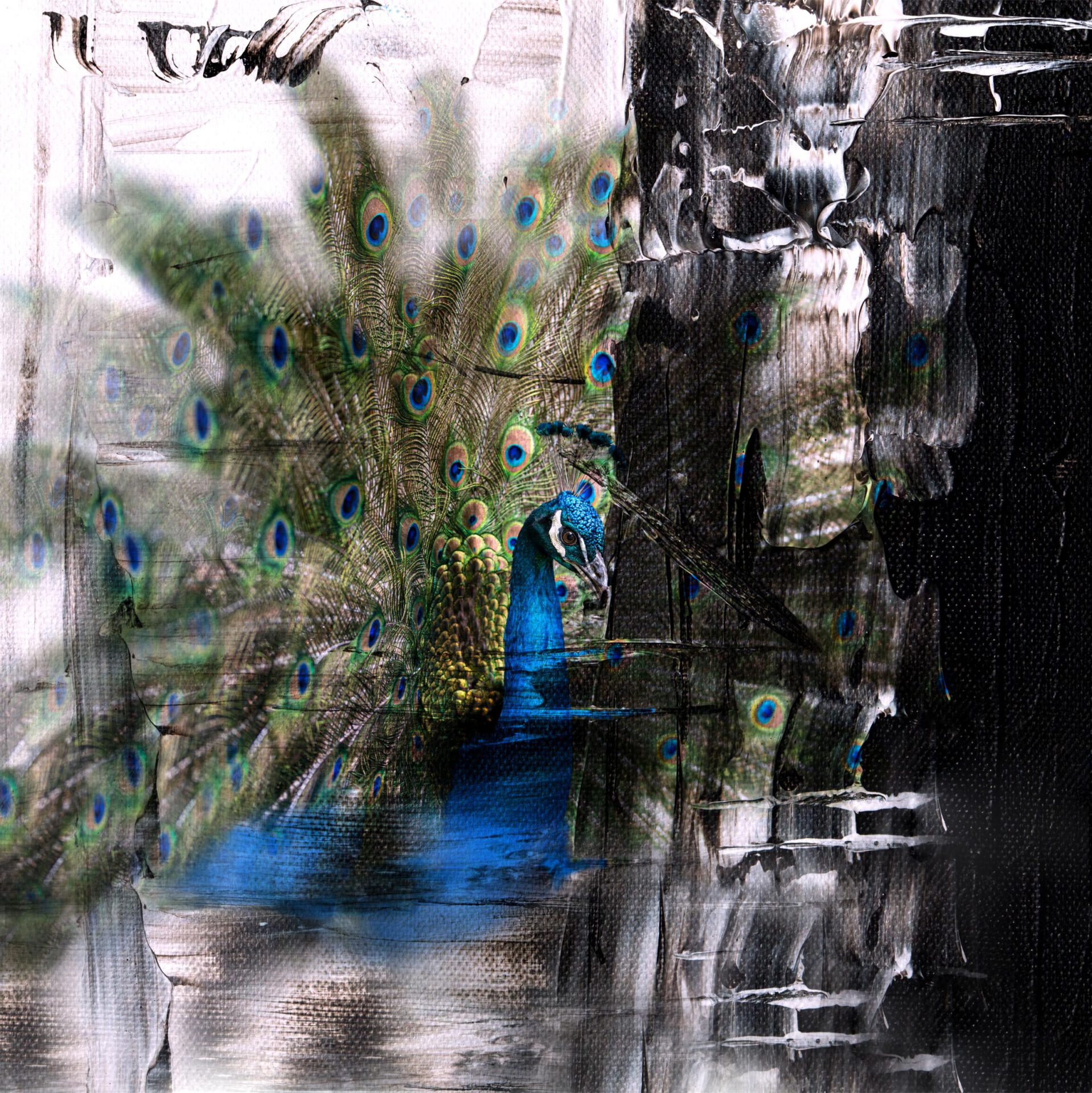 „Paoen“ ist ein Bildnis purer Eleganz – ein Pfau in voller Pracht, gefangen zwischen abstrakter Textur und natürlicher Schönheit. Sein Blick ist wach, sein Gefieder wie ein Kaleidoskop aus Blau, Grün und Gold. Jeder Augenfleck auf seinen Federn wirkt wie ein Tor zu einer anderen Welt – magisch, stolz, geheimnisvoll.