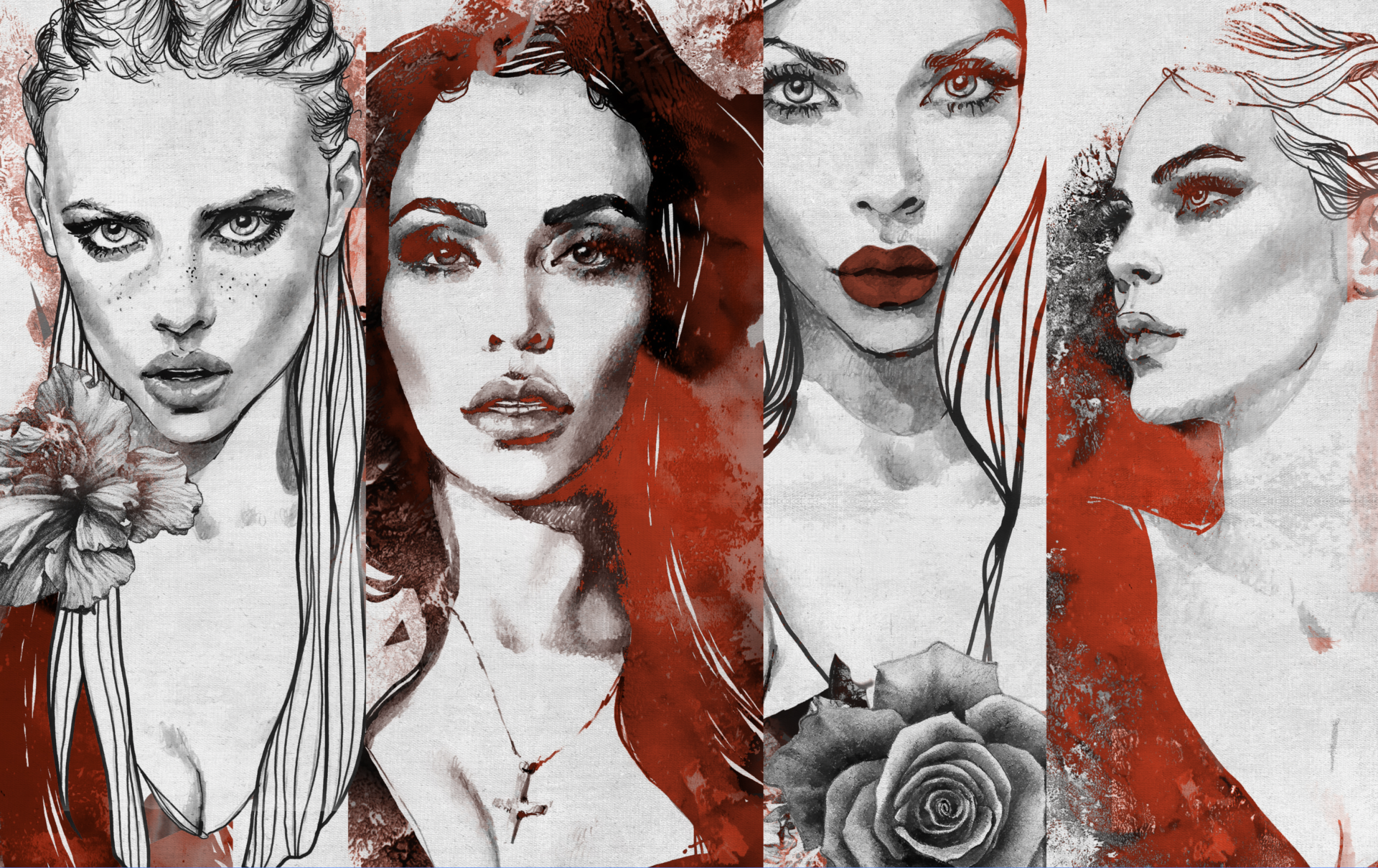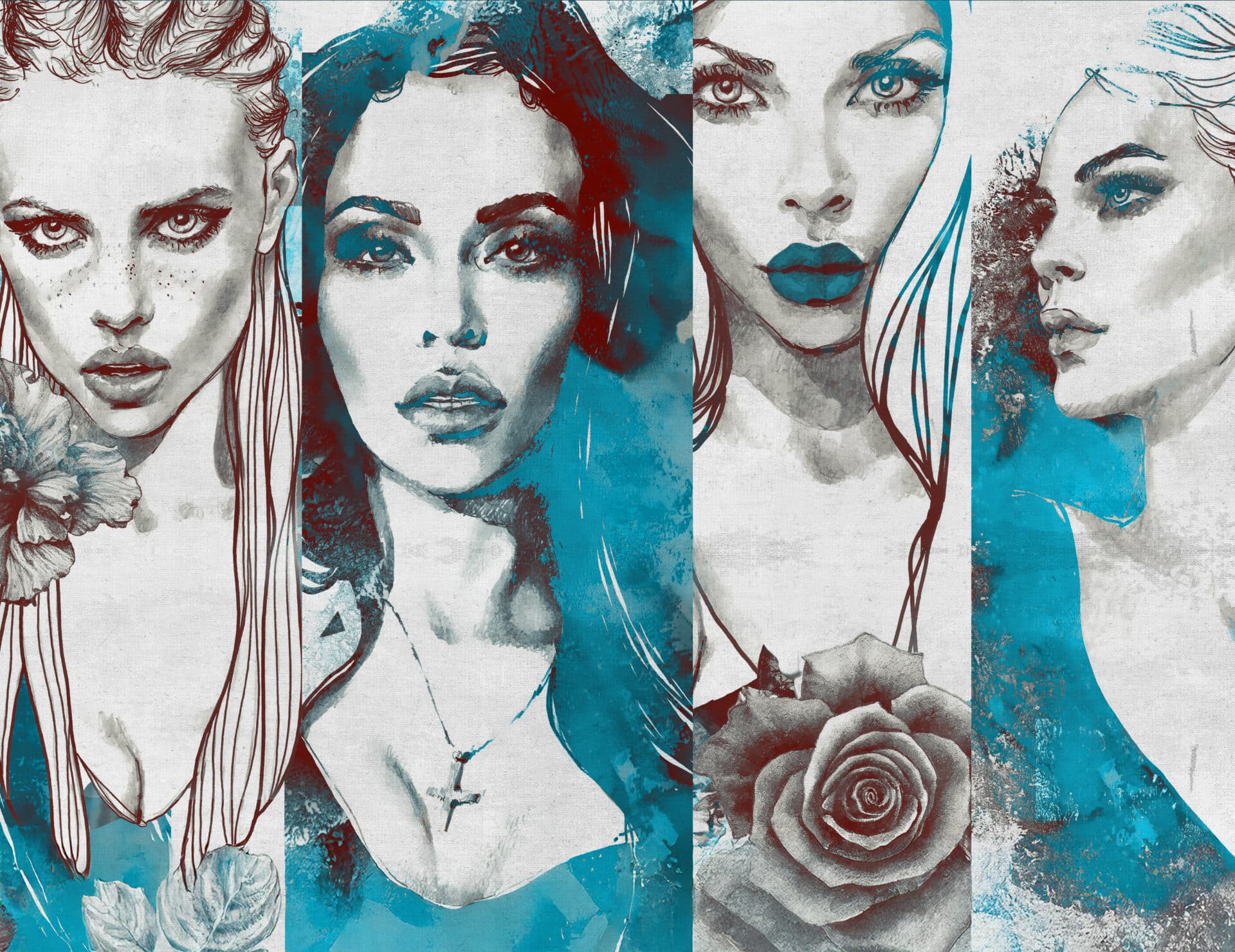 „Tamara“ ist eine künstlerische Komposition, die weibliche Stärke, Rätselhaftigkeit und Wandel zelebriert. Jeder der vier Porträts strahlt eine andere Facette aus – mal herausfordernd, mal verträumt, mal stolz oder verletzlich.