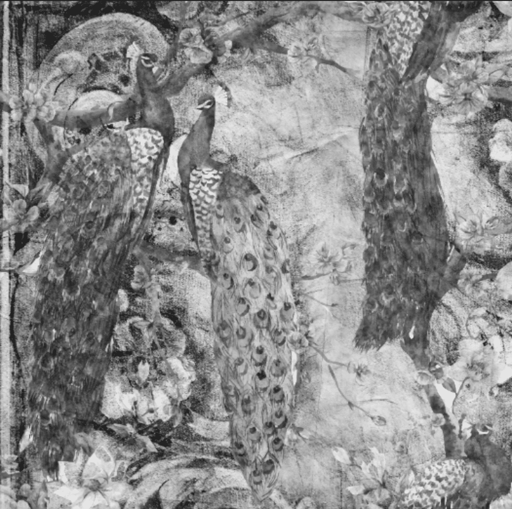 „The Peacock“ ist eine Hommage an die Anmut und Erhabenheit des Pfaus. Die eindrucksvollen Vögel mit ihren opulenten, detailverliebten Schwanzfedern thronen auf Ästen inmitten blühender Zweige. Der illustrative Stil kombiniert klassische Eleganz mit einem Hauch Exotik – fast wie ein barockes Stillleben mit zeitgenössischem Flair.