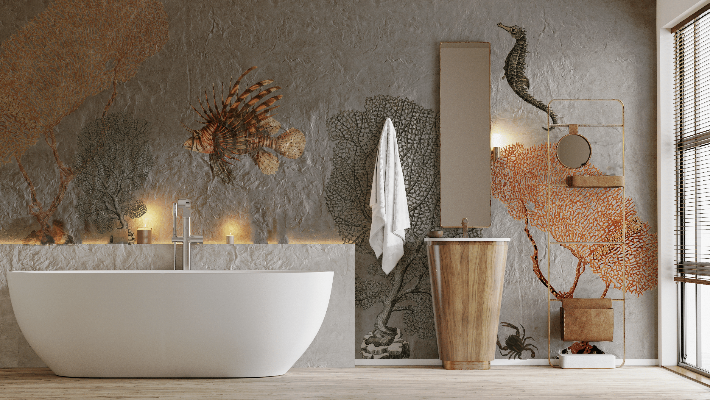 Keine Angst vor Wasserspritzern mehr – mit unserer Syndikat4 Tapete im Nassbereich wird dein Badezimmer zum wasserfesten Highlight! 💦🚿 Fugenlos und stylisch zugleich, denn wer sagt, dass Funktionalität nicht auch schick sein kann?
